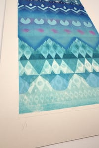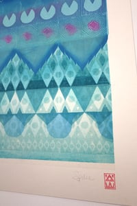 A one-off original print collage. This piece was made using a mixture of Japanese woodblock and mono screen printing techniques, printed on thin Japanese paper and then collaged onto archival mount board.